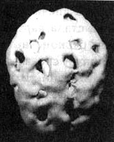 Трехмерное изображение нижней поверхности. Обратите внимание, что мозг выглядит сморщенным, особенно в области префронтальной коры и височных долей.