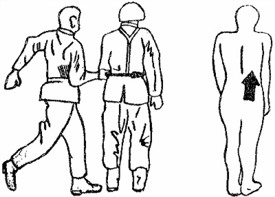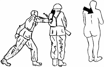 1 — удар между крестцовой костью и поясницей; 2 — удар между лопатками ниже затылка