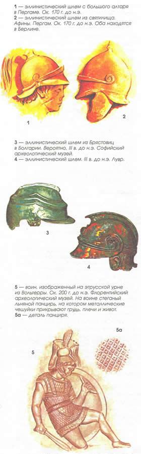 На первый взгляд кажется, что состав позднеэллинистической армии не слишком изменился со времен Александра. В македонской армии Антигона Досона и Филиппа V все еще были гипасписты, пельтасты, пращники и лучники, в функции которых входила поддержка фаланги. Однако создается впечатление, что теперь они не всегда исполняли те же задачи, что и в более ранний период. Гипасписты теперь относятся к разряду воинов царской ставки, предназначенных для выполнения особых поручений, и к агеме — телохранителям царя. Амфиполисский устав говорит, что их шатры возводятся непосредственно после шатров царя и его приближенных. Полностью изменились пельтасты Филипповой армии. При Киноскефале они выстроились бок о бок с фалангой и даже удвоили ее глубину. Следует, видимо, согласиться с предположением Уолбэнка относительно того, что эти пельтасты были на самом деле гипаспистами. Невозможно сказать наверняка, были ли у них копья или пики, так как в этом вопросе источники противоречат друг другу. Ливии назвал таких пельтастов кетратами — Цезарь называл этим словом легковооруженные испанские войска. Если Харманд прав, то именно их — воинов в легких доспехах с круглыми щитами — мы видим на рельефах из Осуны в Испании. В 219 г. до н.э. у Филиппа было пять тысяч таких пельтастов. Самым важным изменением, которое произошло в армии со времен Александpa Македонского, стал перенос акцента с конницы на пехоту. В армии Александра пропорция между всадниками и пешими воинами составляла примерно 1:6, а в позднемакедонской армии — 1:20. Этому не следует слишком уж удивляться — в битве при Херонее в 338 г. до н.э. пропорция была 1:15. Для высокого количества конницы в армии Александра существовала весомая причина — мобильность его армии стала ключом к завоеванию Персии. Хорошо известно, что у персов не было ничего, равного греческой пехоте, но фаланга могла разгромить лишь тех, кого могла догнать. Битву при Херонее выиграла для Филиппа его фаланга, но именно ему обязана своей перестройкой и увеличением числа македонская конница. Причина этого одна — планируемый поход на Персию, где коннице могли быть предоставлены большие возможности. Хотя в Азии всадники продолжали играть существенную роль еще на протяжении ста лет, в Европе фаланга сражалась с фалангой, и конница вновь заняла место вспомогательных войск уже вскоре после смерти Александра. Фалангу македонского типа взяли на вооружение Эпир и все старые города-государства, а поскольку от нее зависел исход сражения, появилась тенденция делать ее все более тяжелой и менее маневренной. Старые названия отрядов армии Александра все еще встречались в Сирии и Египте в конце III — начале II вв. до н.э. Как и следовало ожидать, у Антиоха и у Птолемея были собственная агема и царская ила в коннице. Полибий также упоминает и гипаспистов, но были ли они на самом деле, сказать затруднительно. У Антиоха был отряд агриан, который, должно быть, был набран с северных рубежей Македонии. Несомненно, что они просто оставили себе название существовавшей прежде боевой единицы. После смерти Александра отряд ветеранов с «серебряными щитами» оказался под командованием Эвмения, а по его смерти они отошли к Антигону. Здесь след аргираспидов теряется. Выжить они могли, только если были постоянным отрядом, в котором служили ветераны, переходившие ту