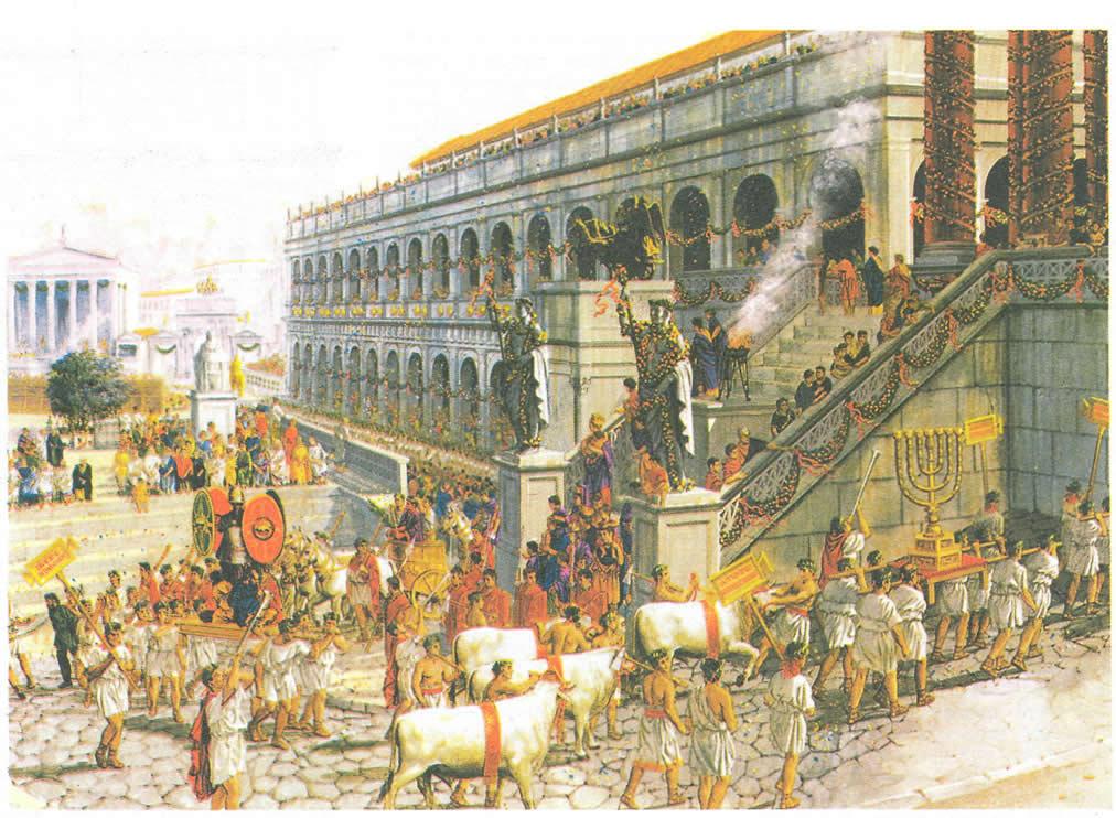 Триумф Тита после победы над иудеями, Пройдя по улицам Рима, процессия поднимается по Священной дороге через Форум к подножию Капитолия, Здесь она начинает подниматься на Clivus Capitolinus (Капитолийский холм).