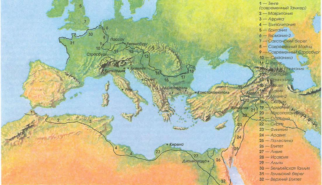Позднеримские мобильные армии и сектора границы около 395 г., согласно «Notitia Dignitatum», иллюстрированному манускрипту того же периода, назначение и внутренняя хронология которого до сих пор являются предметом споров.