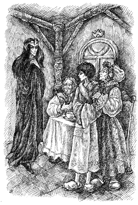 Гость, не говоря больше ни слова, распахнул дверь и вышел. Еще мгновение — и из-за окна раздался перестук конских копыт. Черный конь уносил своего хозяина навстречу наступающей ночи.