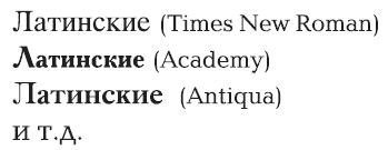 К текстовым относятся легкочитаемые шрифты – латинские (наиболее удобные, благодаря заческам), а также рубленые и брусковые: