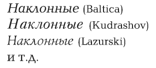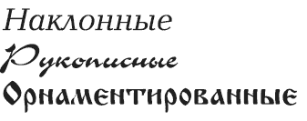 Наклонные шрифты бывают двух типов: курсивы и рукописные. Первые, в основном, являются модификациями латинской группы.