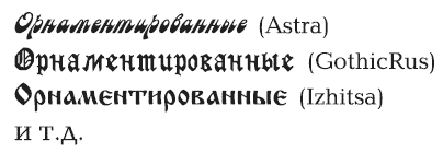 Орнаментированные шрифты часто являются художественно украшенными основными шрифтами.