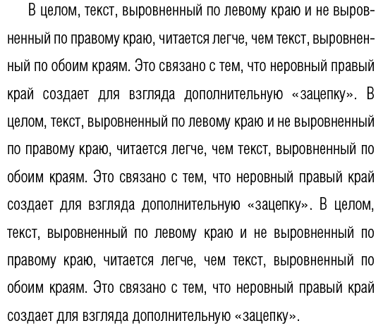 Если же вторая строка окажется длиннее первой, то она направит взгляд читателя в сторону от текста.