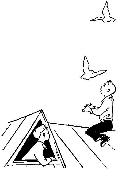 Пашка, как обезьяна, в один миг влетел на крышу и раскрыл корзинку. От солнечного света голуби стали такими ослепительно белыми, что Пашка невольно зажмурился.