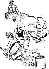 Эх, картошка, объеденье-денье-денье, Пионеров идеал-ал-ал. Тот не знает наслажденья-денья-денья, Кто картошки не едал-дал-дал!Мы начистили полный котел картошки, помогли перемыть, поднесли дров и воды и ушли, хотя оттаявшая повариха долго уговаривала нас остаться пообедать с косцами. Почему-то всем расхотелось есть, даже Казику.