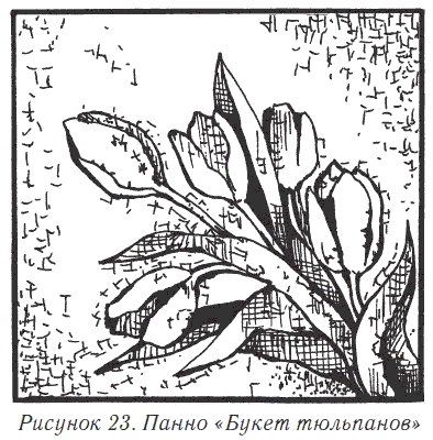 Готовую работу отшлифовать, отполировать и покрыть несколькими слоями акрилового лака. После его высыхания вставить работу в рамку (рис. 23).