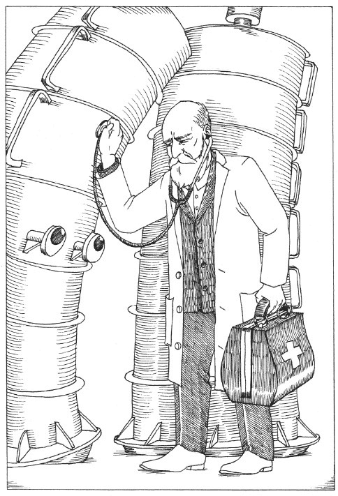 Так вот, в три часа двадцать минут после полудня Шахмар Султаныч появился в девятой секции со стороны лифтов с аптечкой в руках. Навстречу ему ехал на своей поломойке Владимир Владимирович. Встретились они у тела Тимона.