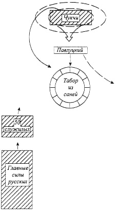 Таким образом, данное сражение представляет нам характерный образец военного искусства как чукчей, так и россиян. В марте, когда заканчивался сезон зимних набегов, большой отряд чукчей совершал обычный разбойничий налет на стада оленей и тут же уходил назад, чтобы русские не успели поднять войска. Однако Д. И. Павлуцкий сразу пошел в погоню и через день настиг врагов. Произошел бой. Яснее всего видна тактика чукчей, поскольку документы концентрируют внимание на способе действия врага. Чукчи, для обеспечения себе стратегического превосходства, встали на возвышенности, по-видимому, еще не зная о численности русских. В первый момент тактика чукчей была оборонительной: им необходимо было выдержать первый залп русских, но затем они перешли в наступление, чтобы разбить врага в рукопашной схватке. Одновременно часть чукчей заходила в тыл, стремясь окружить противника, — это другой характерный элемент чукотской тактики, будь то большой бой или борьба нескольких воинов. Наконец, в этом сражении чукчи преследовали разбитого врага, стремясь закрепить свою победу.