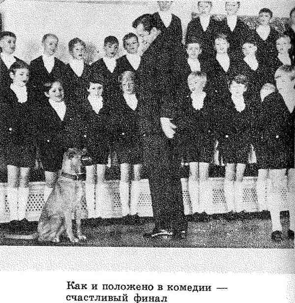 Хор уже исполнял последний латинский куплет «Магнифики» Иоганна Себастьяна Баха, как вдруг из-за кулис осторожно выглянула девочка, дочь Анны Павловны. Девочка держала на поводке Тинга. Увидев и услышав родимый хор, Тинг рванулся, бесцеремонно, на виду у зрителей, выбежал на сцену и… залез под рояль на свое законное место.