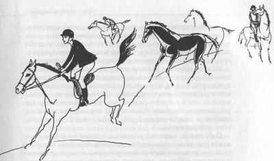 Оказавшись наконец в том, что называется седлом, я посмотрела вниз и испытала легкое головокружение. С некоторым удивлением я выслушала предложение отцепиться от шеи лошади и сесть нормально, выпрямив спину и подняв голову. «Ишь чего захотели!» — подумала я про себя, а вслух попросила присутствующих не беспокоиться, мне и так, дескать, неплохо. От конюха ничего хорошего ждать не приходилось, поэтому, когда он взял лошадь под уздцы, я честно, как на американских горках, зажмурилась. И правильно, потому что чудовище подо мной пришло в движение, раздался грохот копыт, бряцанье костей, лязг моих зубов — и фигуру, сочетающую меня и моего коня, ввели в манеж.