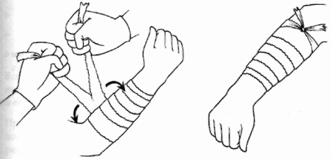 Наложение любой повязки состоит фактически из двух этапов: во-первых, рану следует накрыть и, во-вторых, зафиксировать то, чем вы рану накрыли.