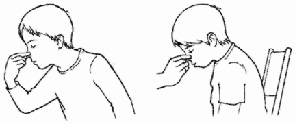 ► прижмите нос пальцами в точке, показанной на рисунке, и не прекращайте давление в течение 10 минут;