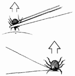 ► захватите клеща как можно ближе к головке, внедрившейся в кожу. Сделать это можно: