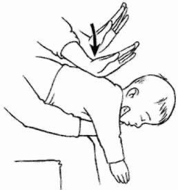 ► сделайте 5 резких ударов основанием ладони другой руки между лопатками в направлении от спины к голове.