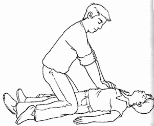 Переверните ребенка на спину. Основание ладони поместите на грудину посередине грудной клетки. Быстро надавите 5 раз. При нажатии грудина должна опускаться на 2,5–3 см.
