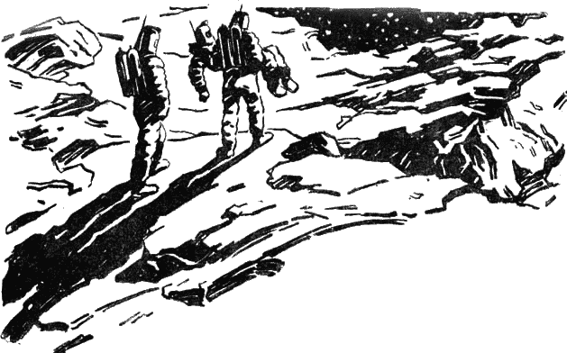 Как только снова появилось Солнце, звездолёт ожил. Восемь человек из его экипажа собирались идти под водительством Второва и Коржёвского для осмотра найденных развалин. На звездолёте, кроме Мельникова, оставались Топорков и занятые у двигателей Зайцев и Князев. Брали с собой длинные верёвки, кирки, заступы, двойной запас кислорода, взрывные патроны и радиоаппаратуру для новой разведки недр.