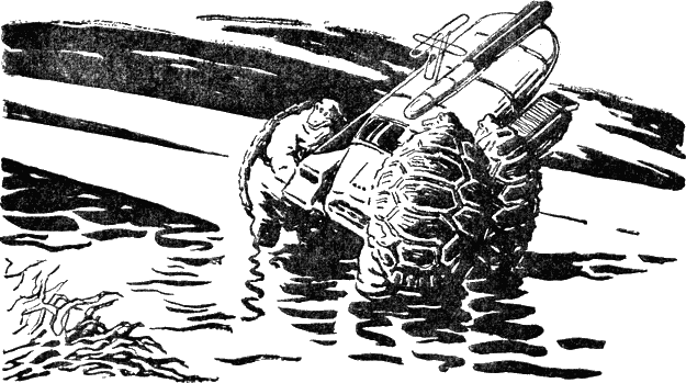 Вода доходила до половины корпуса. Уклон берега был очень крут. Опомнившийся Князев дал задний ход, и машина медленно, с трудом вылезла обратно на берег.