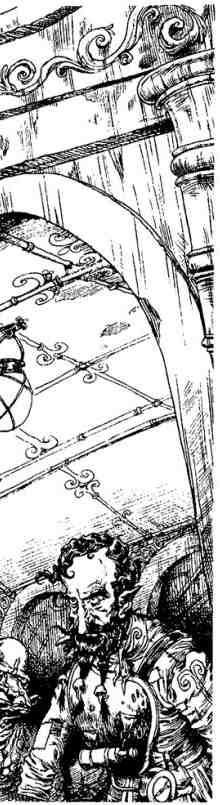 Капитан Гриф только сейчас заметил двух незнакомцев, выступивших из тумана. Оба были очень молоды, один из них одет как библиотекарь. Опущенный капюшон не давал рассмотреть лицо юноши. Второй казался выше и крепче первого. Он носил белые одежды из кожи головонога, не скрывал лица и храбро смотрел в глаза капитану.