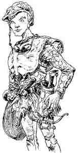 К поясу у него были прикреплены кожаные патронташи и мотки кожаных ремней. На боку висел острый зазубренный нож, а рядом с ним зачехлённый серой тканью увесистый арбалет. В мышино-пепельном мраке Тайнограда высокая фигура со светлыми волосами, облачённая в белёсые одежды, казалась призрачной.