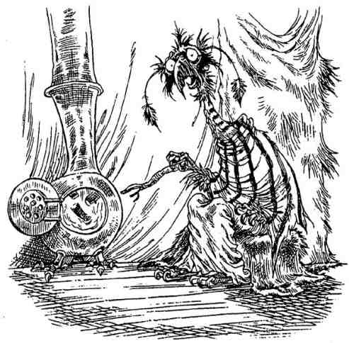 — А в чём, собственно говоря, дело? — спросил Стоб, хватая худосочное существо за жидкое крылышко и освобождая Магду от вцепившихся в неё коготков.