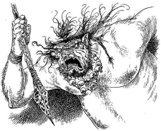 Грозное оружие просвистело мимо и вонзилось в спутанные ветви подлеска. Чудовище вытащило ещё одно копьё и вперевалку затопало вперёд. Ожерелье из черепов задребезжало.