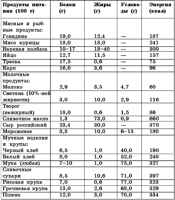 Чтобы правильно составить рацион, подобрать необходимые продукты, нужно учесть питательные свойства каждого продукта, его калорийность и насыщенность витаминами и минеральными веществами. Избавиться от лишнего веса можно, лишь произведя строгий подсчет калорийности всех продуктов, которые будут входить в меню. Снизить калорийность рациона можно за счет жиров и углеводов, заменив продукты, содержащие их в избытке, другими, не менее полезными (табл. 8).