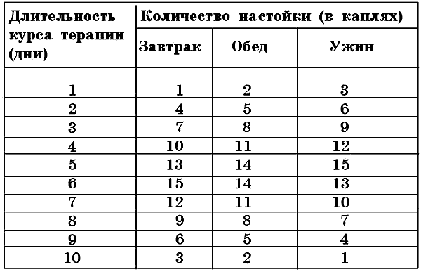 В последующие дни принимать это средство следует по 25 капель на 50 мл молока по 3 раза в день до тех пор, пока не закончится весь приготовленный запас настойки. Затем в лечении делается длительный перерыв – 5 лет, после чего процедуру можно повторить.