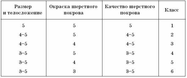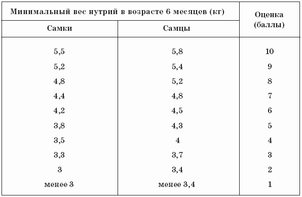 Оценку 3–5 баллов за размер получают только животные с соответствующим их возрасту и полу телосложением, а также весом (табл. 14).
