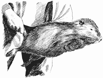 Чтобы пересадить зверька из транспортировочной клетки в подготовленное для него помещение, его необходимо загнать в угол, а затем взять одной рукой за середину хвоста, придерживая другой рукой под грудью и приподняв его голову выше туловища (рис. 13). Если нутрия ведет себя агрессивно, то ее надо взять за хвост и за задние лапы и таким образом перенести в клетку. Молодняк в возрасте до 3 месяцев переносят, зажав рукой под мышкой.