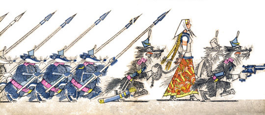 – Дед Прохор сказал, что надо бы сплесть из паутины поясок с золотым волосом и доставить его Маше. Как она его наденет, тут же волки падут на землю, издохнут, а барсуки друг дружку пиками переколют. Вот я и надумала: не взялась бы ваша артель за это дело? Уж очень вы неприметные. Вам даже во вьюшку влезть ничего не стоит.