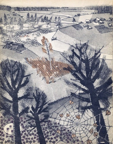 А с мужичками случилось вот что: когда взошло солнце и стали таять-редеть туманы, дошли наконец мужички до осеннего края, остановились на песчаном бугре, долго глядели вокруг и только вздыхали, - не приходилось им на своём веку видеть такую страну.