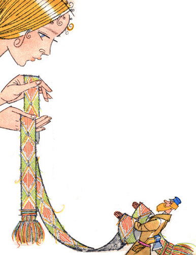 Так оно и было. Мужички пришли в горницу, Маша усадила их за стол, угостила чем обещала, а мужички проглядели на неё все глаза: уж больно хороша была Маша – косы отливают таким золотом, что от них светится вся горница, глаза синие, будто небеса над ржаными полями, голос говорливый, как ручей, и вся она тоненькая, как травинка.