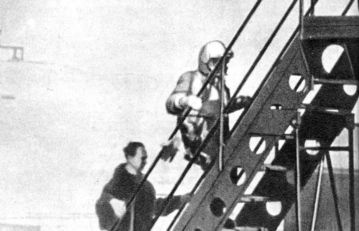 Шум двигателей, вибрацию, все возрастающие перегрузки на участке выведения корабля на орбиту я перенёс хорошо, не ощущая ни головокружения, ни тошноты; и сознание, и зрение, и слух были такими же, как на Земле. С первых же секунд движения ракеты я начал работать: следил за приборами, поддерживал двухстороннюю радиосвязь с командным пунктом, через иллюминаторы наблюдал за удаляющейся Землёй. Горизонт всё время расширялся, в поле зрения возникали и ширились земные дали, залитые ярким солнечным светом. Это было во много раз грандиознее тех ландшафтов, которые раньше открывались взору под крылом реактивного самолёта.