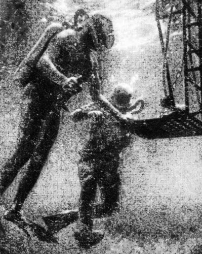В этот раз легко достигаю семиметровой глубины. Щелкают барабанные перепонки — это внутреннее давление стало соответствовать наружному, исчезла всякая боль в ушах. Несмотря на то, что ничего не вижу вокруг, на этот раз не испытываю волнения и страха. Мысль, что Рэм рядом, успокаивает.