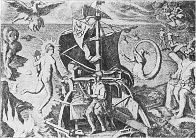 Аллегорическое изображение плавания Магеллана по Магелланову проливу.