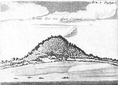 С берега виден был давно знакомый девственный лес, поднимавшийся у самого моря и покрывавший гористые острова Тидор и Тернате. Огромный вулкан Тидора был наполовину закрыт облаками. У берега ютилось селение: все те же свайные постройки, те же вытащенные на берег узкие лодки, те же свиньи и куры.