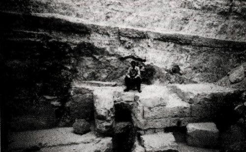 Результаты наших наблюдений показывают, что небольшой холм был «выбурен», чтобы устроить внутри него Пер-Нетер. Мы установили, что камни фундамента по-прежнему «врезаны» в подстилающую горную известняковую породу холма, и пришли к выводу, что пирамида совсем не была оставлена недостроенной; в свое время это была полноценная Пер-Нетер, если судить по камням, которые все еще стоят на своих местах (см. рис. 58). К своему нынешнему плачевному состоянию пирамида пришла либо в результате того, что ее разобрали на отдельные блоки, либо же ее сознательно разрушили. Нам удалось спуститься внутрь холма на глубину примерно в 100 футов, и я с интересом обнаружил там гладкие стены каверны, которые живо напомнили мне стены туннелей, в которые я спускался в Гизе и наблюдал в Саккаре (см. рис. 59). Мне представляется очевидным, что те же самые люди, которые пробурили туннели в Гизе и Саккаре, «вынули» внутренности холма и построили Пер-Не-тер в Абу-Роаше (см. рис. 60).