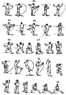 Эти рисунки взяты из книги Чэнь Сина (1849-1929), опубликованной в 1933. Подписи к рисункам указывают, на что следуег обращать внимание при выполнении тайцзи-цюаня. Все эти концепции очень трудно выразить на западных языках.