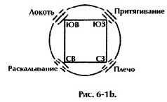 Вода обманчива. Хотя она и вьнлядит мягкой и податливой, ее внутренняя сущность опасна. В И-Цзине триграмма воды Кань называется «разрушительной» и упоминается как обозначающая величайшую опасность. Пословица «капля по капле камень точит» тоже очень хорошо передает обманчивую и опасную 1грироду воды. Признаки воды относятся и к тайцзи-цюаню в целом, и к позе Цзи в частности. Внешние проявления тайцзи-цюаня, т. е. мягкие, податливые движения, скрывают внутреннюю природу – самую эффективную и опасную форму рукопашного боя. И все же из Восьми Ворот тайцзи-цюаня Цзи наиболее полно выражает природу воды, поэтому следует выполнять позу Цзи подобно тому, как вода входит в щели в скале, стоящей на ее пути. Вода сначала смачивает внешнюю поверхность скалы («прилипает»), а затем спускается в скалу, чтобы разрушить ее. Чтобы выполнить позу нажимания, встаньте в Пэн, затем поместите открытую ладонь свободной руки ближе к внутренней стороне запястья отражающей руки. Если вы стоите в позиции «правое Пэн», то левая кисть перемещается к правой кисти. Левый локоть опущен вниз (см. рис. 6-1е).
