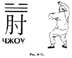 3. Следующая вариация называется Чжоу-Даньбянь-Ань, или «Удар локтем-Одиночный кнут-толкание». Упражнение сложное, состоит из шести шагов. Мы опишем его по каждой позе отдельно: