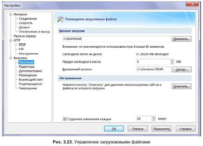 Подразделы Фильтры URL (URL Filters) служат для серьезной настройки параметров соединения и загрузки. В большинстве случаев вносить изменения в данные параметры не понадобится, а в обратном случае вы можете обратиться к русифицированной справочной системе программы.