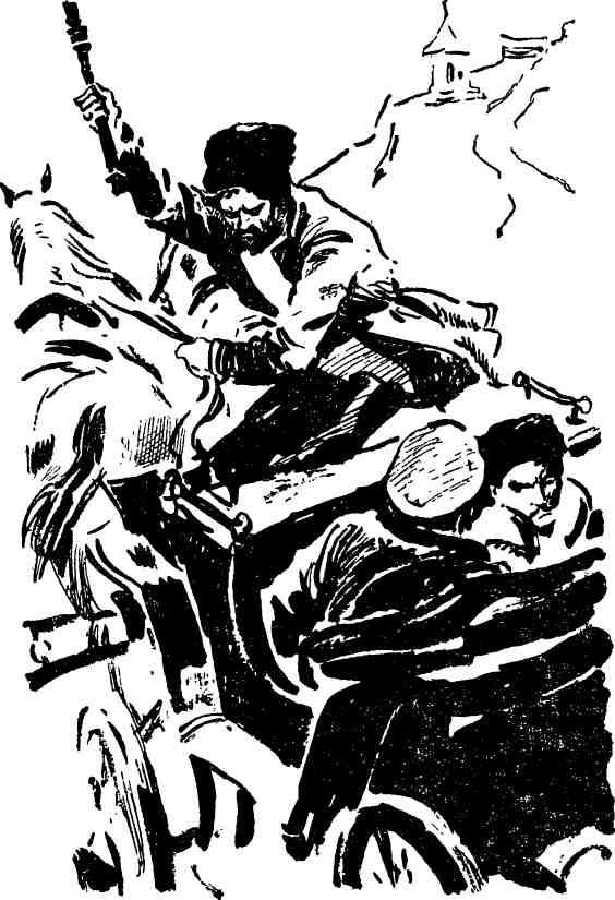 За станицей Пашковской после часовни начинался спуск к реке. Недавняя оттепель и ночной мороз сделали свое. Пригорок отблескивал ледяной коркой, будто специально политый. Всадники, шедшие впереди, сдержали коней, и тяжелая пролетка обогнала их. Впереди, вдоль прибрежного лозняка шел плотный, укатанный путь. Егор хлестнул лошадей. Связанный есаул упал на чекиста, придавив его к спинке сиденья. Пролетка резко рванулась вперед. Лихо засвистев лошадям, Егор со звериной гибкостью бывалого всадника перегнулся с козел и обрушил страшный удар железного шкворня, лежавшего под сеном, на голову человека в штатском пальто. Подвинувшись в сторону, есаул плечом выбросил тело на дорогу. Лошади рванули облегченную пролетку вперед. Сзади скользили по обледеневшему спуску конные красноармейцы.