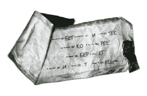 — Да, и много еще чего, — скромно ответил Дэн. Дэн нашел у себя замусоленный карандаш и приготовил фантик от леденца. Сигналы прекратились. Дэн присел на корточки, и Эми подняла карточку. Сигналы возобновились. Дэн стал записывать их, шепотом диктуя себе под нос.