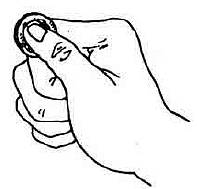 б) звезду зажимают между большим и указательным пальцами (подобно монете).
