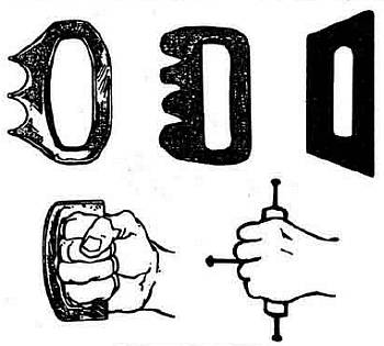 «Настоящий» кастет является безусловно нелегальным оружием, к тому же его не так то просто изготовить. Именно поэтому на улицах пользуются огромной популярностью различные приспособления типа кастета.