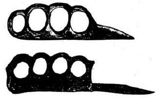 б) цельная пластина-кастет, к которой прикреплен небольшой клинок.