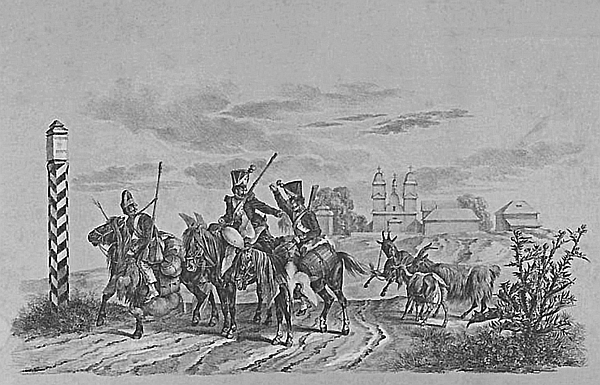 Разъезд французской армии под Кочергишками. Гравюра Х. В. Фабер дю Фора. 1830-е гг.
